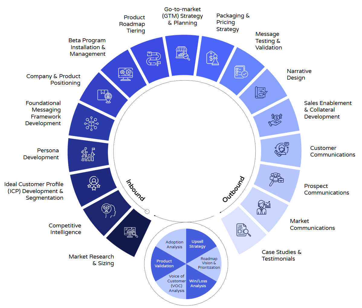 Through our work supporting product marketing and go-to-market strategy, we observe that high-performing organizations build GTM infrastructure that connects inbound commercialization decisions with outbound execution.
