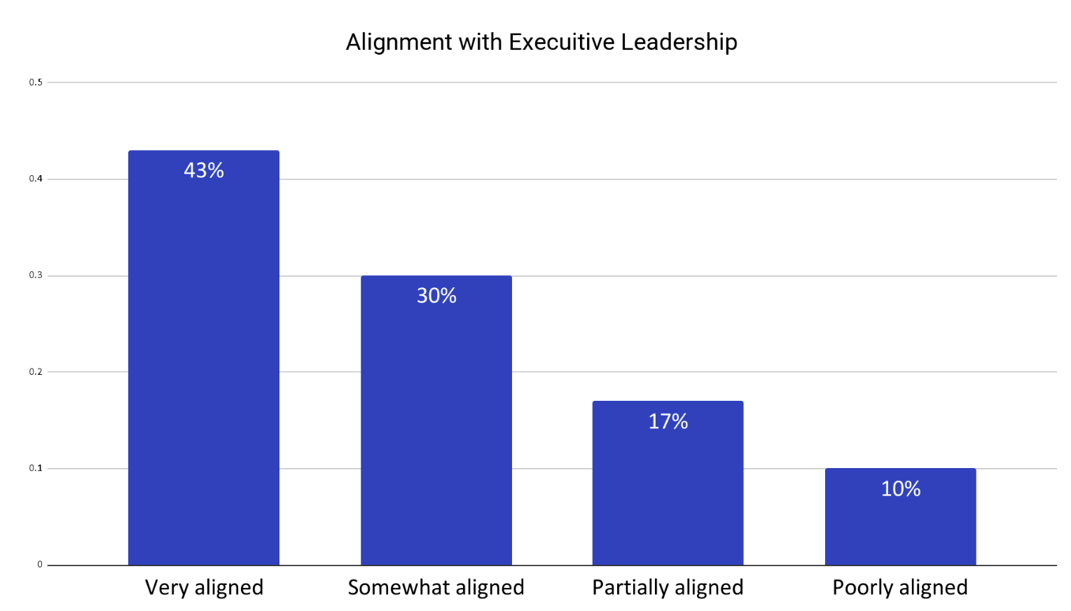 A second pattern emerged from both the survey and interviews: 43% of product marketing leaders report strong executive alignment around the importance of PMM.