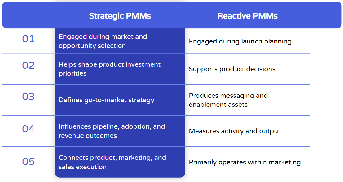 The transition from reactive to strategic PMM therefore does not simply involve expanding responsibilities. Instead it requires repositioning product marketing earlier in the commercialization decision chain.