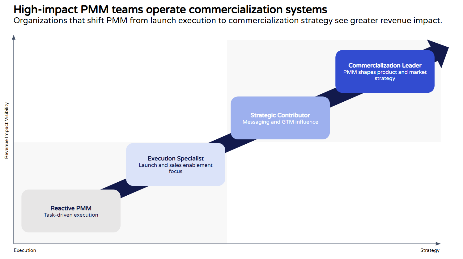 Together these insights point to a shift in how organizations should think about product marketing. Rather than functioning primarily as a downstream marketing role, PMM becomes the commercialization engine that aligns product investment with market opportunity and revenue growth.